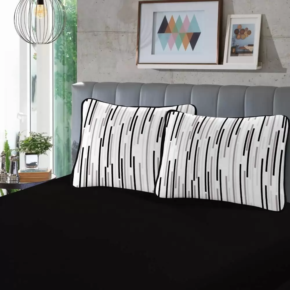 - Vem duas fronhas estampadas e o lençol liso.