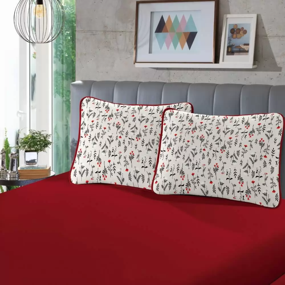 - Vem duas fronhas estampadas e o lençol liso.